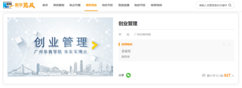 ▲ 《创业管理》——新华网“新华思政”优质课程思政案例