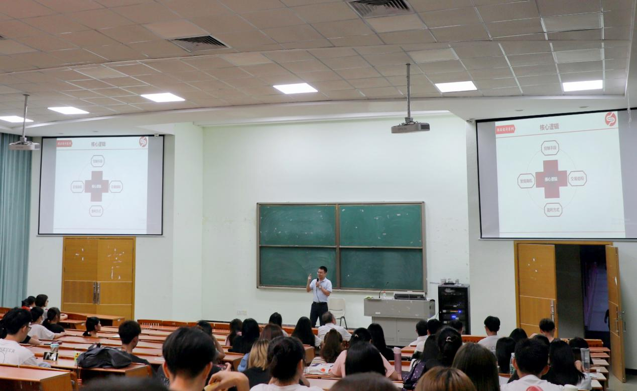 课堂伊始,郑老师带领同学们一起回顾了上节课关于顶层设计的内容。随后,郑志伟老师从发现商机、控制手段、交易结构和盈利方式四个角度切入阐释商业的核心逻辑。他着重讲解了控制手段中的提升自身核心竞争力从而打造品牌优势,通过举喜茶舍弃加盟的方式而通过直营店来严格控制出品质量的例子,使同学们对核心竞争力有了充分的理解。