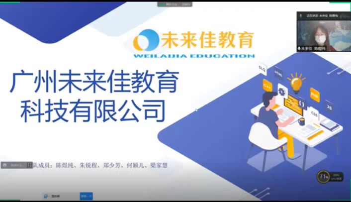 广州未来佳教育科技有限公司项目类型为创业实践项目,项目参赛学生人数为五人,负责人陈煜纯,其他的项目成员分别为梁家惠,郑少芬,何儿女和朱锐程,指导老师余家军副教授。
