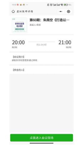 周四晚上讲座开始前,审核通过的报名者点击微信群里的报名邀请小程序,出现以下页面(历史样例):