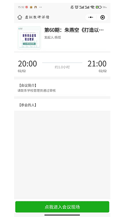 讲座开始前,审核通过的报名者点击微信群里的报名邀请小程序,出现以下页面(历史样例):
