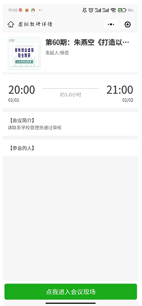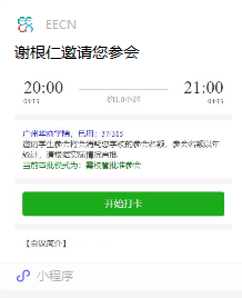 讲座开始前,审核通过的报名者点击微信群里的报名邀请小程序,出现以下页面(历史样例):