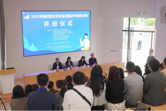 培训班开班仪式邀请了广州美术学院党委副书记穆林,景德镇市昌南新区党工委委员、管委会副主任张英,广东省高等学校毕业生就业促进会常务副会长向丹阳等,北京高校毕业生就业促进会秘书长廖锋主持本次培训课开班仪式。