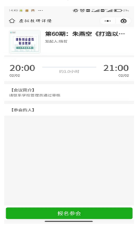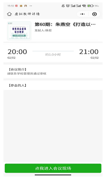 讲座开始前,审核通过的报名者点击微信群里的报名邀请小程序,出现以下页面(历史样例):