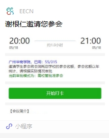 讲座开始前,审核通过的报名者点击微信群里的报名邀请小程序,出现以下页面(历史样例):