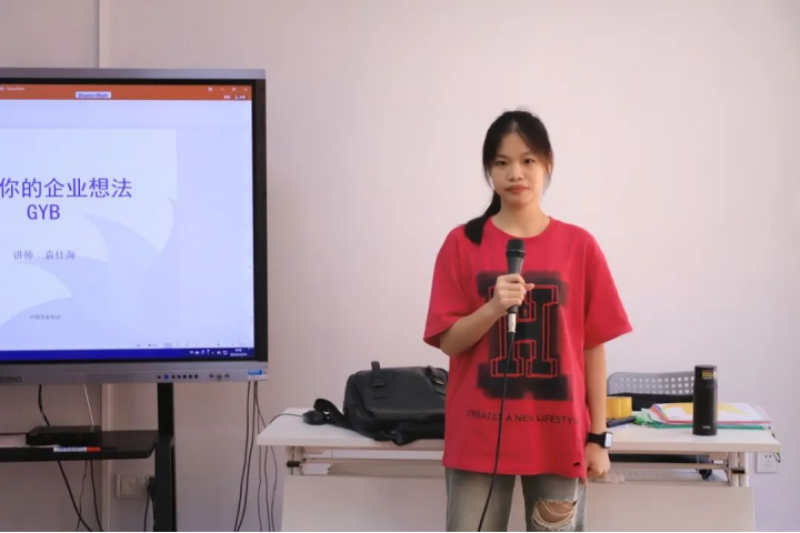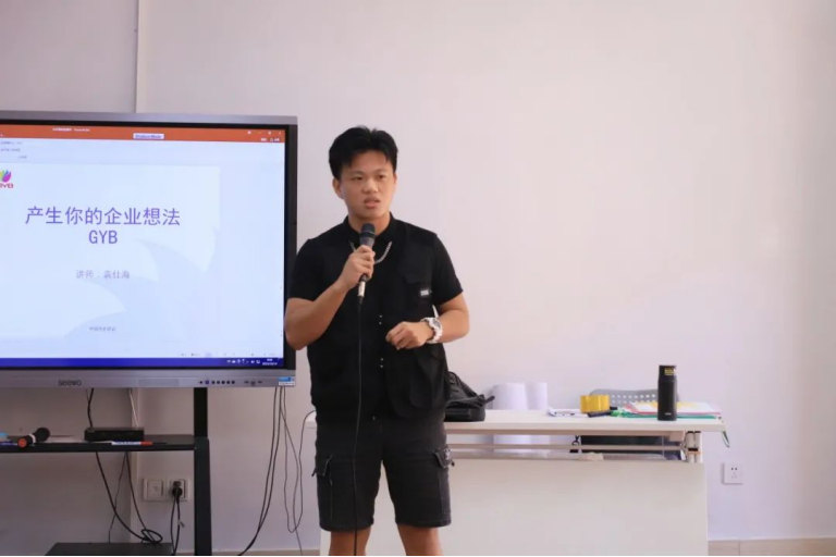 学员代表黄镇杰在开班仪式上发言。他认为,GYB创业培训班能培养学员们的创业思维,引导大家选择适合的创业项目,提高创业素养,了解必备的创业条件以及政府相关的太阳集团。同时,他向大家分享了自己的创业经验,在创业的过程中,他结识了志同道合的同伴和专家,在不同思维的碰撞中,不断提高自己的创业能力,并找到了适合自己的创业方向。黄镇杰同学表示,GYB培训虽然短暂,但也是充实的。他希望和学员们一起学习,在培训中思考如何将所学知识与未来职业规划相结合,不断挖掘尚未发现的创业潜力,并应用到未来的创新创业竞赛和创业实践中。