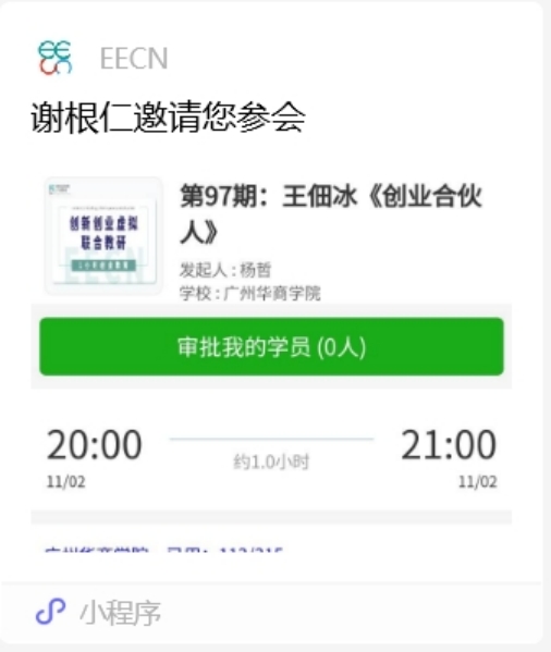 报名截止时间之后,我们根据报名次序,在小程序中审核、确定前7名为本期讲座会议会员。