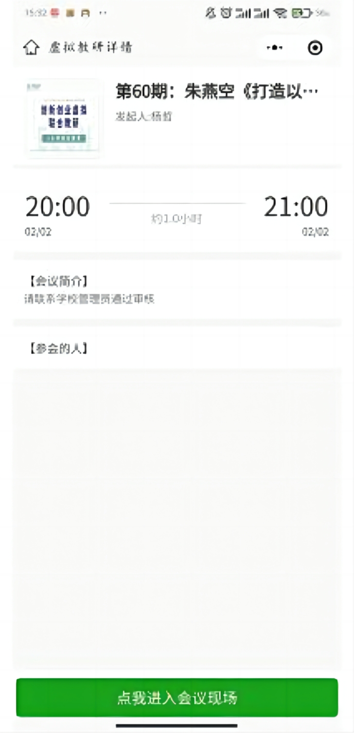 讲座开始前,审核通过的报名者点击微信群里的报名邀请小程序,出现以下页面(历史样例):