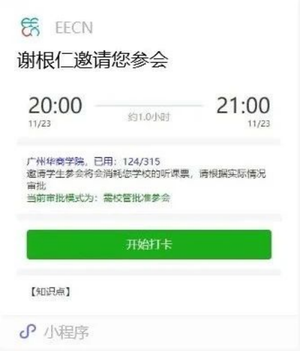 讲座开始前,审核通过的报名者点击微信群里的报名邀请小程序,出现以下页面(历史样例):