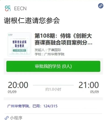 报名截止时间之后,我们根据报名次序,在小程序中审核、确定前7名为本期讲座会议会员。