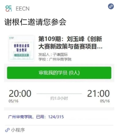 报名截止时间之后,我们根据报名次序,在小程序中审核、确定前7名为本期讲座会议会员。