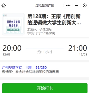 讲座开始前,审核通过的报名者点击微信群里的报名邀请小程序,出现以下页面(历史样例):