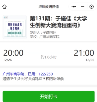讲座开始前,审核通过的报名者点击微信群里的报名邀请小程序,出现以下页面(历史样例):