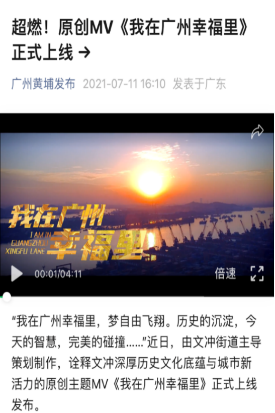 完成了黄浦区特别定制mv《我在广州幸福里》的拍摄项目。