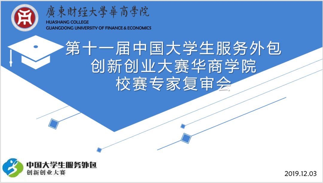 2019年12月3日下午3点第十一届中国大学生服务外包创新创业复审在行政楼512如期举行。复审期间,评委老师对参赛作品进行了认真专业的审核,确证复审结果的公平公正。