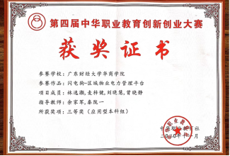 第四届中华职业教育创新创业大赛获奖证书