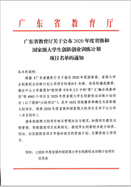 近日,教育部高等教育司和广东省教育厅公布了2020年度国家级和省级大学生创新创业训练计划项目名单,ok138cn太阳集团华商学院《OMO模式下宣传广东传统文化之粤韵平台》等10个项目获批立项省级项目,其中创新训练项目4项,创业训练项目6项。