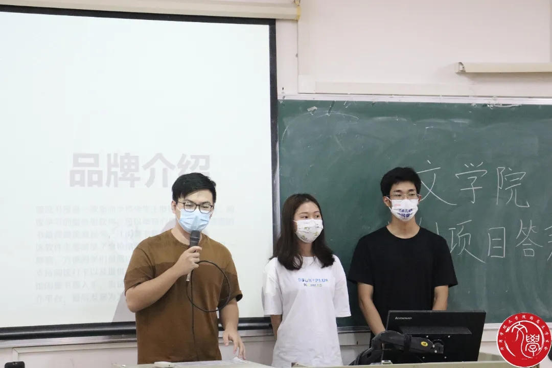 不知不觉来到第三个小组上台答辩,该小组的研究项目为“书籍借阅线上平台——漂流书屋APP”。该小组从增强闲置纸质书的流动性这一角度出发,介绍了“漂流书屋”APP的研发背景,功能,平台运行机制以及后期成果预设。而后三位老师都分别对该项目做出点评,张献荣教授首先赞扬了APP取名的独特,但三位老师也指出项目书不够详细,调研数据有待完善等。