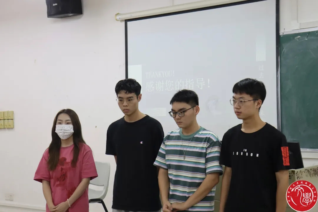 首先上台答辩的小组的项目是“广东省韶关市翁源县乡村文化记忆表征的激活与重构研究”。该小组主要从研究目的、研究思路、研究方法、预期研究成果这四方面展开。小组负责人讲解完后,老师就该方案指出了调研与研究没有区分,后期应用价值不明确等问题,该同学认真地回答老师的问题并谦虚地听取老师的建议,但老师也对该小组的研究项目方向给予了肯定。