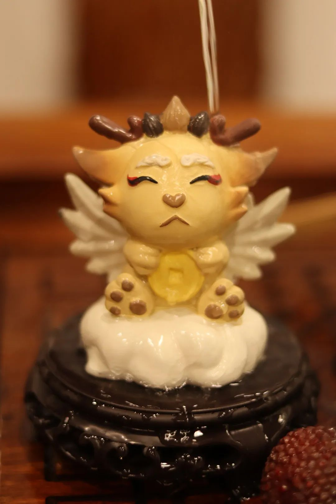 变色吉祥物茶宠结合当今市场对于茶宠唯美风格需求缺口,设计出飘飘欲仙的感觉,它坐着祥云为您送来财富,它性格温顺可爱,动可翱翔于天际,静可守护山海大河。