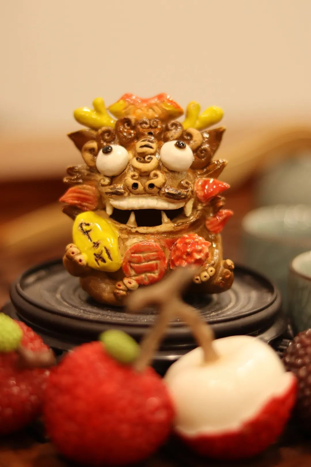 华商貔貅茶宠作为华商学院对外交流可赠予对方的礼品,以丑萌的风格进行设计,佩戴华商logo链子,左手抱着雕刻着华商字样的石头,右手抱着荔枝,极具灵动性。陶瓷大师匠心打造,赋予了茶宠极强的厚重感。