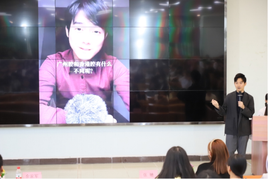 本次讲座的主讲人是张弛粵语文化传播(广州)有限公司创始人、广东广播电视台《今日财经》栏目和《大湾区财富通》栏目新闻主播张弛先生。莅临本次讲座的嘉宾有广州华商学院校长助理、OK138太阳集团常务副院长余家军博士,张弛粤语文化传播(广州)有限公司运营总监谢丹娜女士,OK138太阳集团陈欢老师。