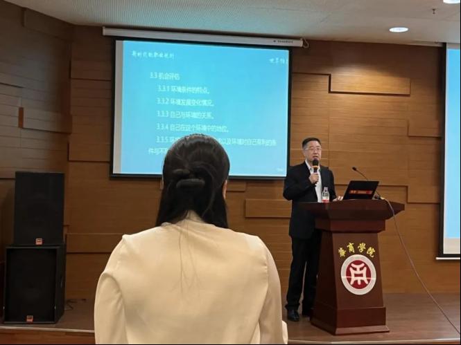 讲座伊始,杜绪明主席详细介绍了职业规划的历史背景、时代背景和发展历程,使同学们对职业规划有了更加深入的了解。随后,杜绪明主席重点讲解了职业规划的方法,提出“确定志向、自我评估、机会评估、职业选择、路线选择、设定目标、行动措施、评估反馈”八步法。杜绪明主席列举了职业规划的五大典型案例及五大实操案例,以助力同学们掌握职业规划的知识。同时,杜绪明主席也讲述了用人单位对大学生的期望,从专业的角度对大学生求职、择业提供了许多宝贵的建议。
