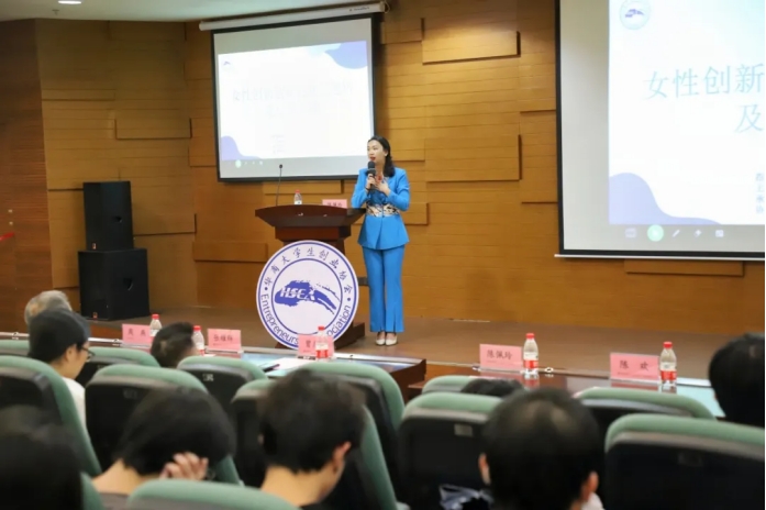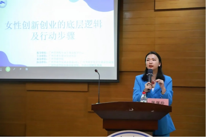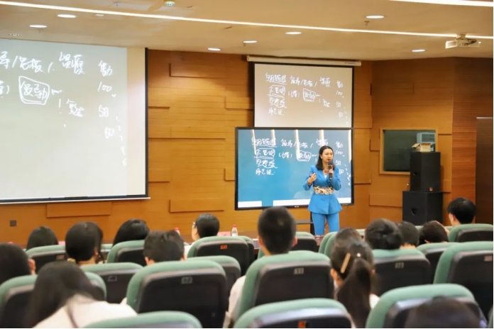 接着,陈佩玲女士以自身经历为例,向同学们呈现了一个女性创业者的生动形象。她指出,成功的创业者往往都是榜样。应当从他们身上汲取经验,学习他们的创业精神和经营智慧。同时,结合自身的实际情况,将这些经验应用创业实践中。她强调,创业并非易事,需要有坚定的信念和不懈的努力,才可能闯出一片属于自己的天地;创业也并非适合每一个人,每个人都需要根据自己的性格、能力和兴趣来选择适合自己的道路。