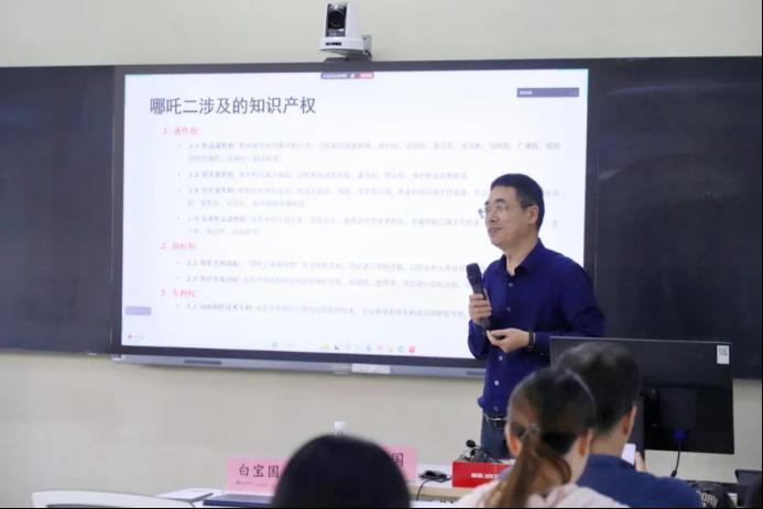讲座伊始,白宝国先生以“哪吒2”电影知识产权布局与校园APP商标抢注等典型案例为切入点,生动诠释了知识产权作为“创意到财富桥梁”的核心价值,强调在创新驱动发展的时代背景下,知识产权已成为企业核心竞争力的关键支撑。