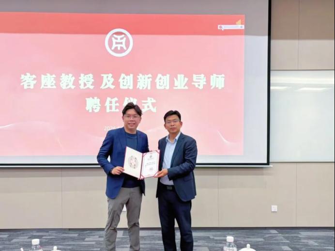 余家军副校长为沈慧林先生颁发广州华商学院客座教授及创新创业导师聘书。